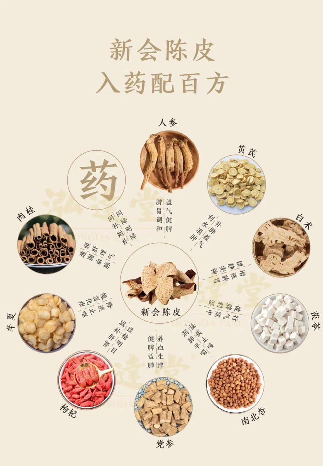 陈皮味辛、苦,性温,归脾肺经,具有理气、调中、燥湿、化痰的功效,临床应用非常广泛。《中国药典》收载含陈皮的成方制剂高达 176 种。